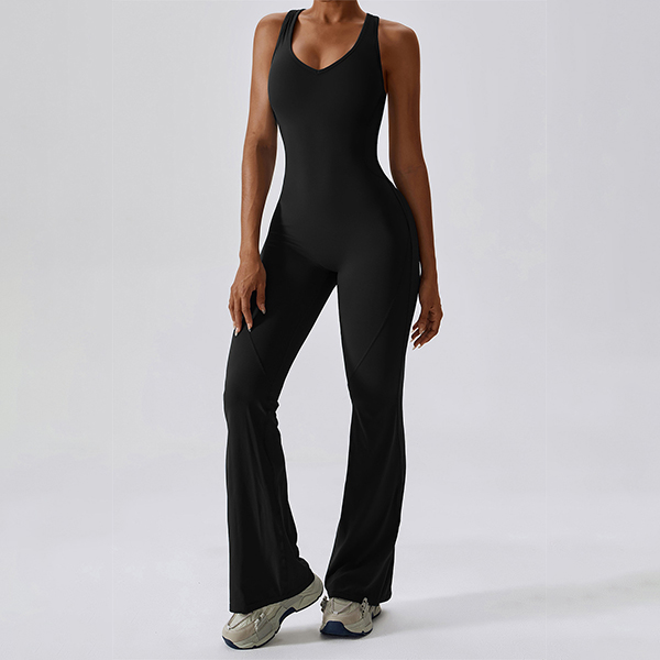 Fashion Round Neck Sleeveless Backless Straight-cut Workout Jumpsuit