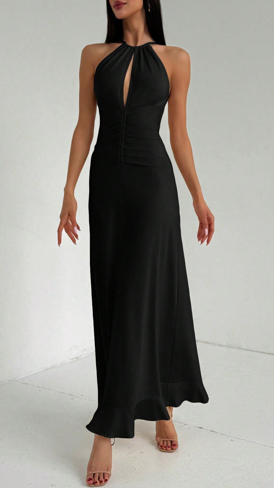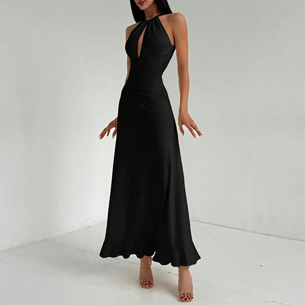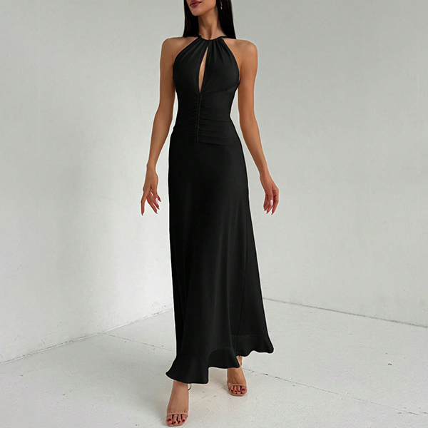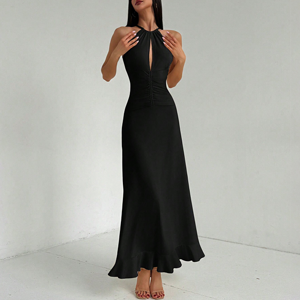 This eye-catching maxi dress combines a sleek and modern silhouette with a stylish front cutout detail, creating a fashion-forward and alluring ensemble. Is it your style?