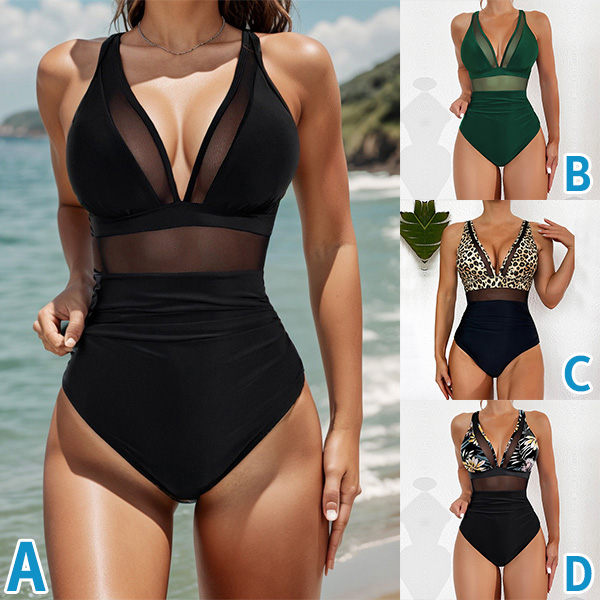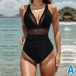 Fashion Round Neck Sleeveless Gauze Spliced One-piece Swimsuit