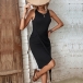 Fashion Round Neck Sleeveless Knoted Ruched Irregular Hemline Bodycon Dress