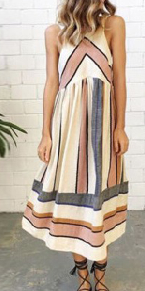 Because of you, this dress also get more beautiful. It is outfitted with striped printed,