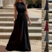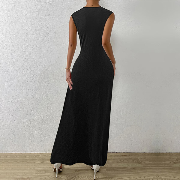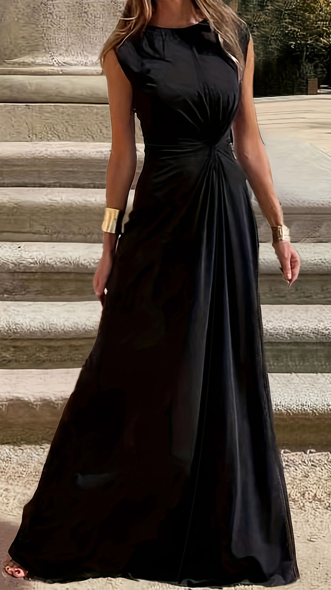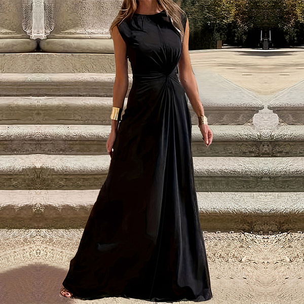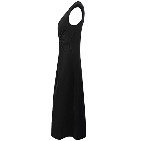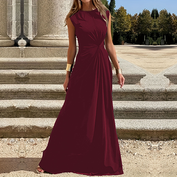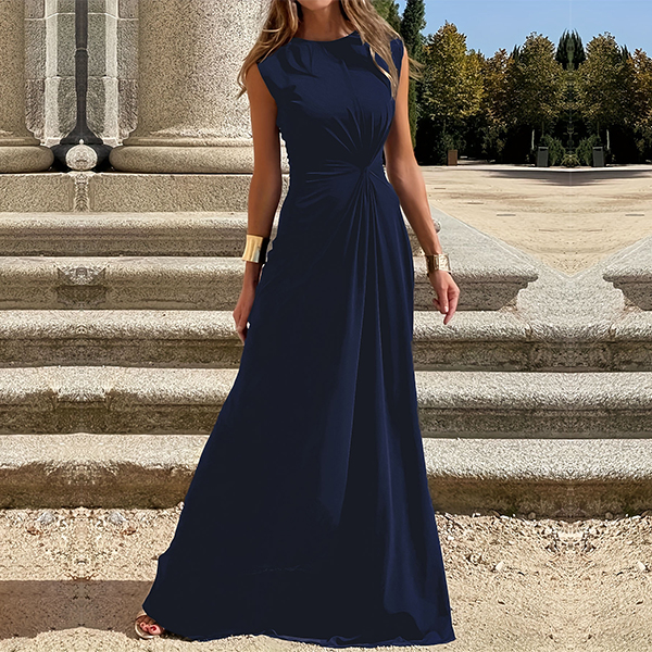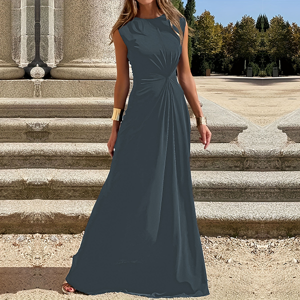 Fashion Round Neck Sleeveless Ruched Cinch Waist Maxi Dress