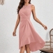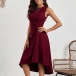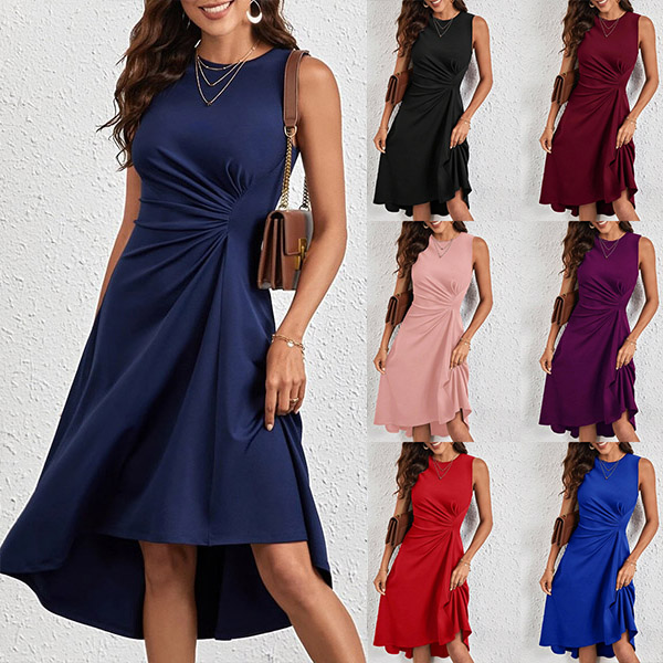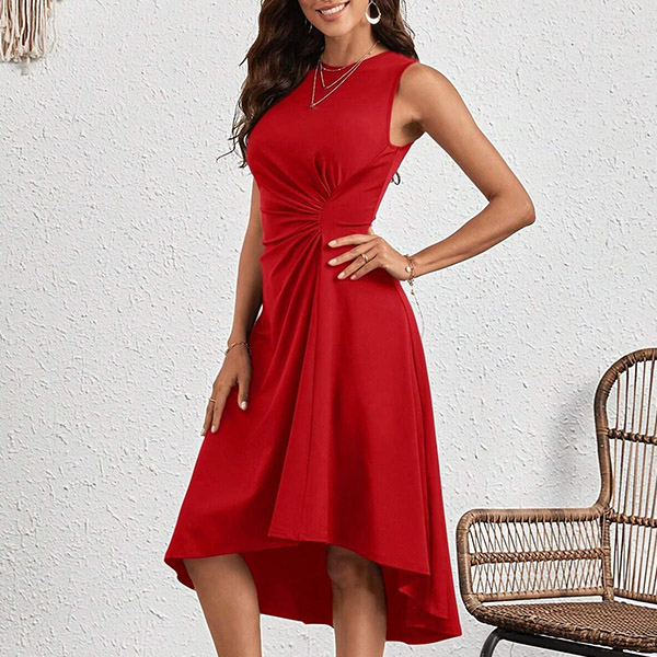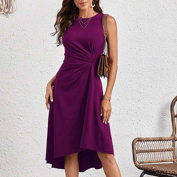 Fashion Round Neck Sleeveless Ruched Midi Dress