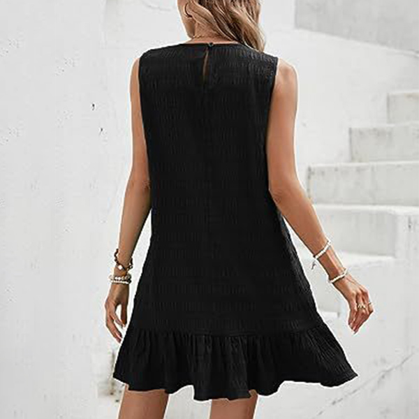 Fashion Round Neck Sleeveless Ruffled Hemline Mini Dress