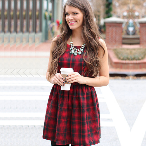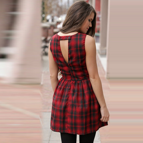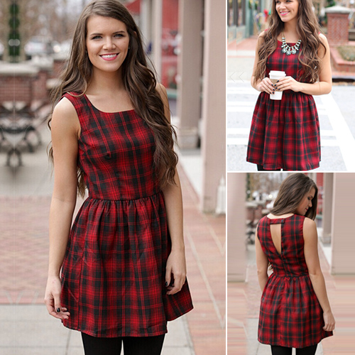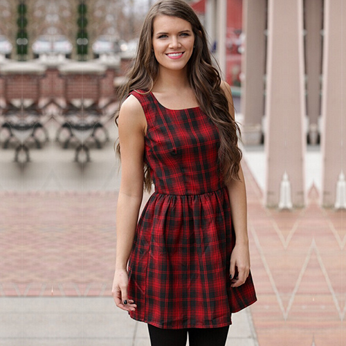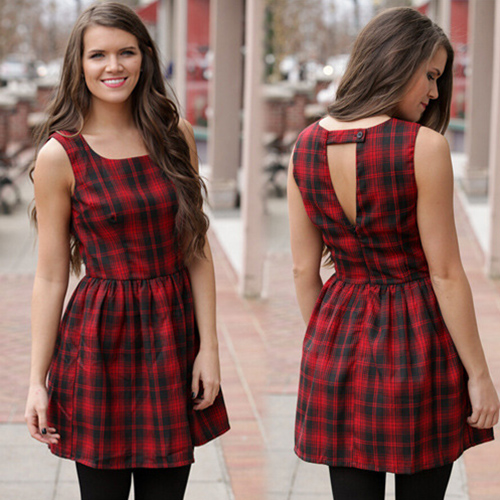 Plaid style,filled with stylish,chic and elegant elements. Sleeveless,round neck and slim fit design.