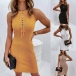 Fashion Round Neck Sleeveless Solid Color Lace-up Knitted Dress
