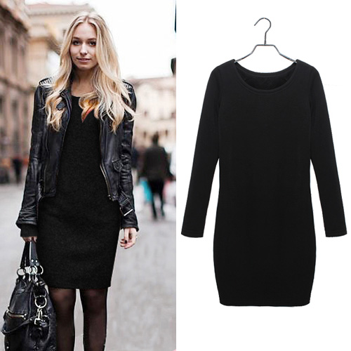 Crafted from skin-friendly fabric,with plush lining,warm and comfortable to wear. Fashion round neck,long sleeve and solid color design. Slim fit and package hip design,showing your charming curve. A perfect choice for you in winter.