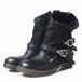 Fashion Round Toe Buckle Block Heel Artificial Leather PU Ankle Boots