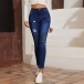 Fashion Ruched Distressed Frayed Hemline Skinny Denim Jeans