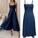 This is a chic and trendy denim dress that exudes sophistication and modern flair. The square neck design adds a touch of elegance. While the ruched detailing adds a hint of texture and visual interest, enhancing the feminine and stylish look of the dress. The high-rise waistline adds a flattering touch to the dress, creating a sleek and polished silhouette. The denim fabric adds a casual and versatile element to the dress, making it perfect for a variety of occasions. Wanna have a try?