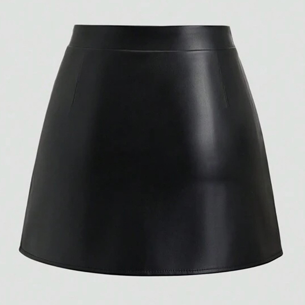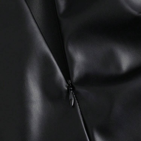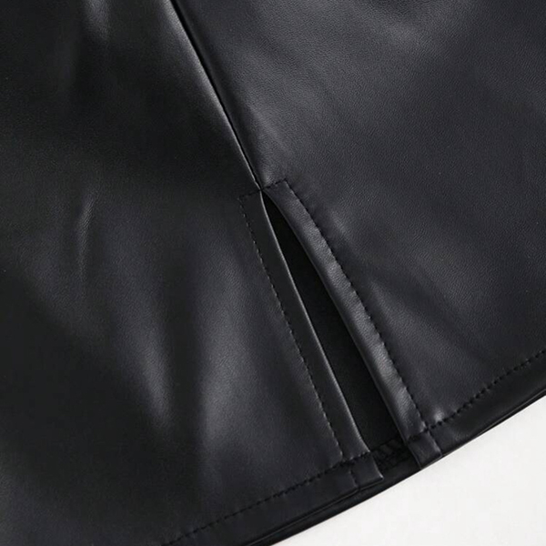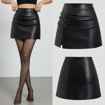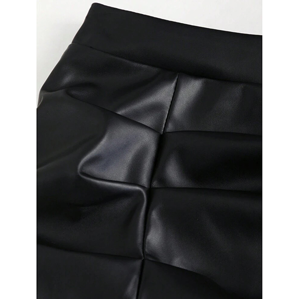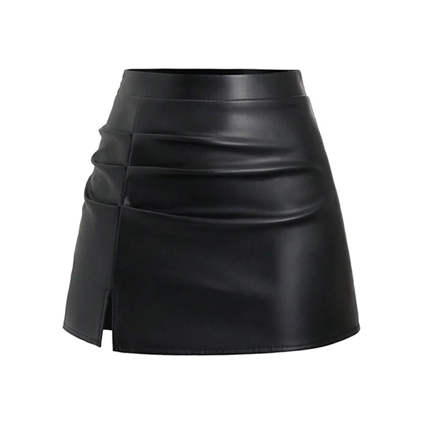 Fashion Ruched Side Slit Artificial Leather PU Mini Skirt