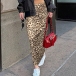 Fashion Ruched Side Slit Leopard Maxi Skirt