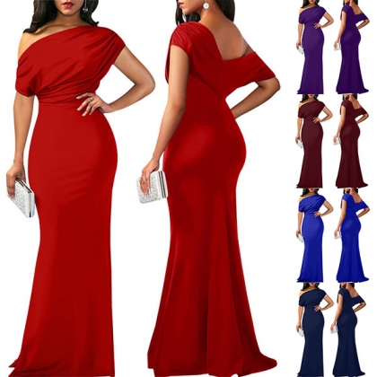 Stand out at your next event with this stunning maxi party dress. The ruched detailing on the bodice adds a unique and stylish touch. While the slant shoulder provide a chic and elegant look. The backless design adds a touch of allure and drama, perfect for making a statement at any party or special occasion. The maxi length is perfect for formal events, and the ruching adds a flattering and figure-enhancing effect. Your next party's beauty weapon!