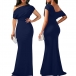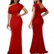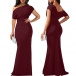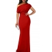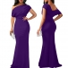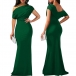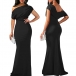Fashion Ruched Slant Shoulder Short Sleeve Backless Maxi Party Dress
