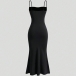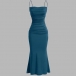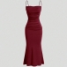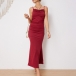 Fashion Ruched Square Neck Bodycon Slip Dress