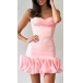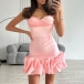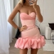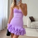 Fashion Ruched Sweetheart Neckline Ruffle Gauze Spliced Hemline Slip Party Dress