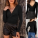 Look at this black shirt! The ruched detailing on the front adds a trendy and flattering element, creating a unique and eye-catching look. Wanna have one?