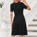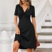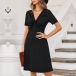 Fashion Ruched V-neck Short Sleeve Black Dress