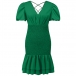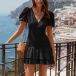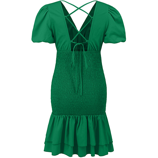 Fashion Ruched V-neck Short Sleeve High-rise Smocked Ruffle Mini Dress