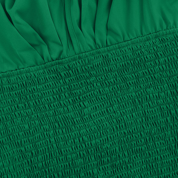 This is a flirty and feminine dress that combines a ruched details in the bodice, V-neckline, short sleeves, a high-rise smocked waist, and ruffle hemline details for a trendy and stylish look.
