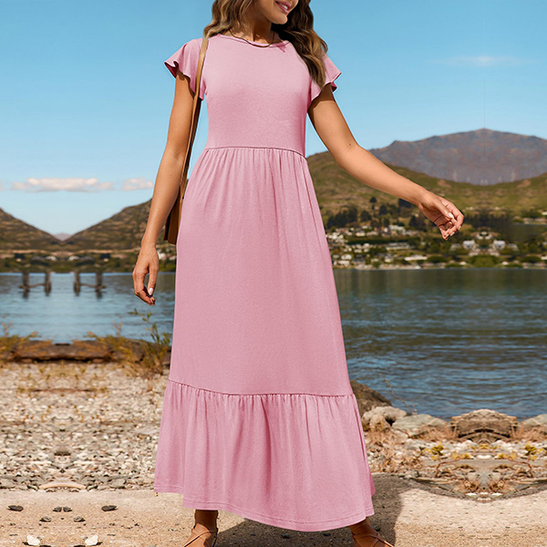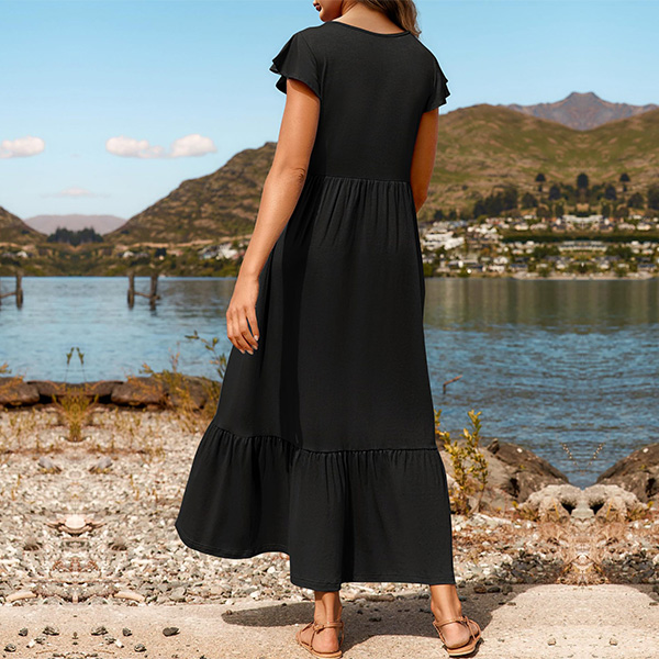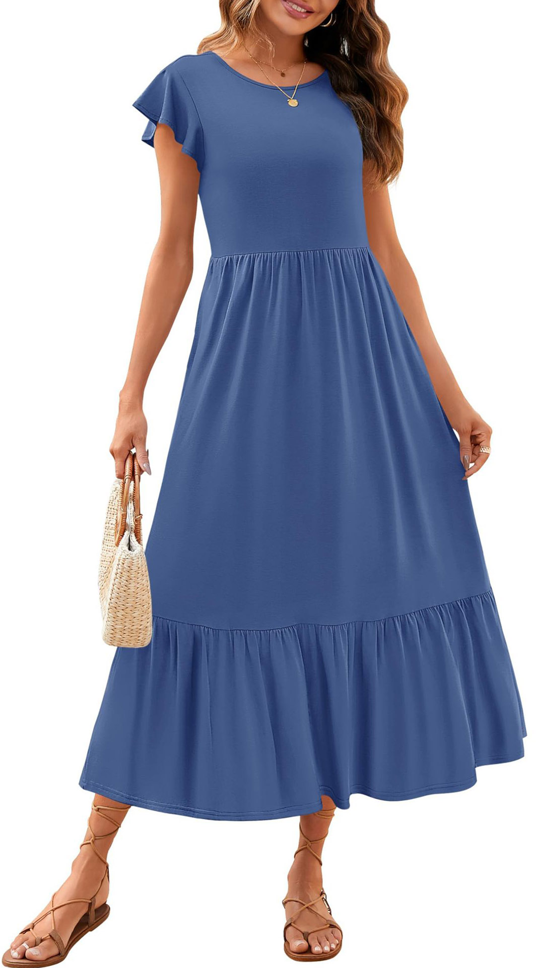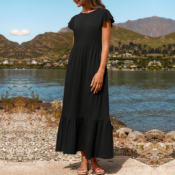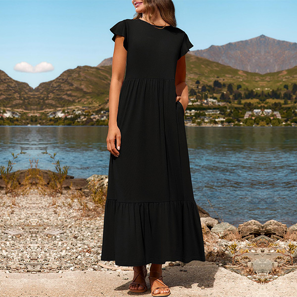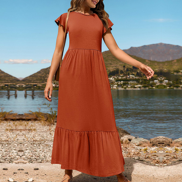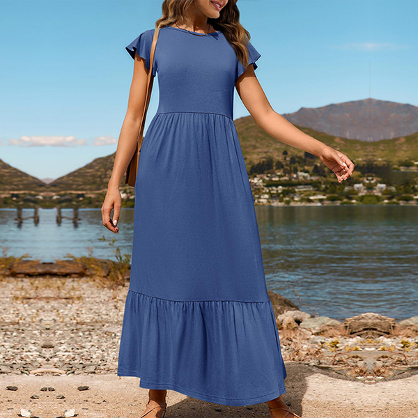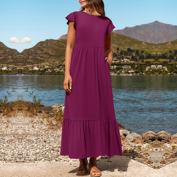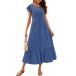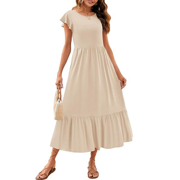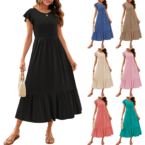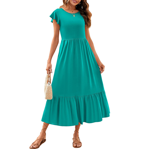 This elegant midi dress features a beautifully feminine and romantic design, blending delicate ruffles along the cap sleeve with a classic silhouette. Multi-colors avabile.