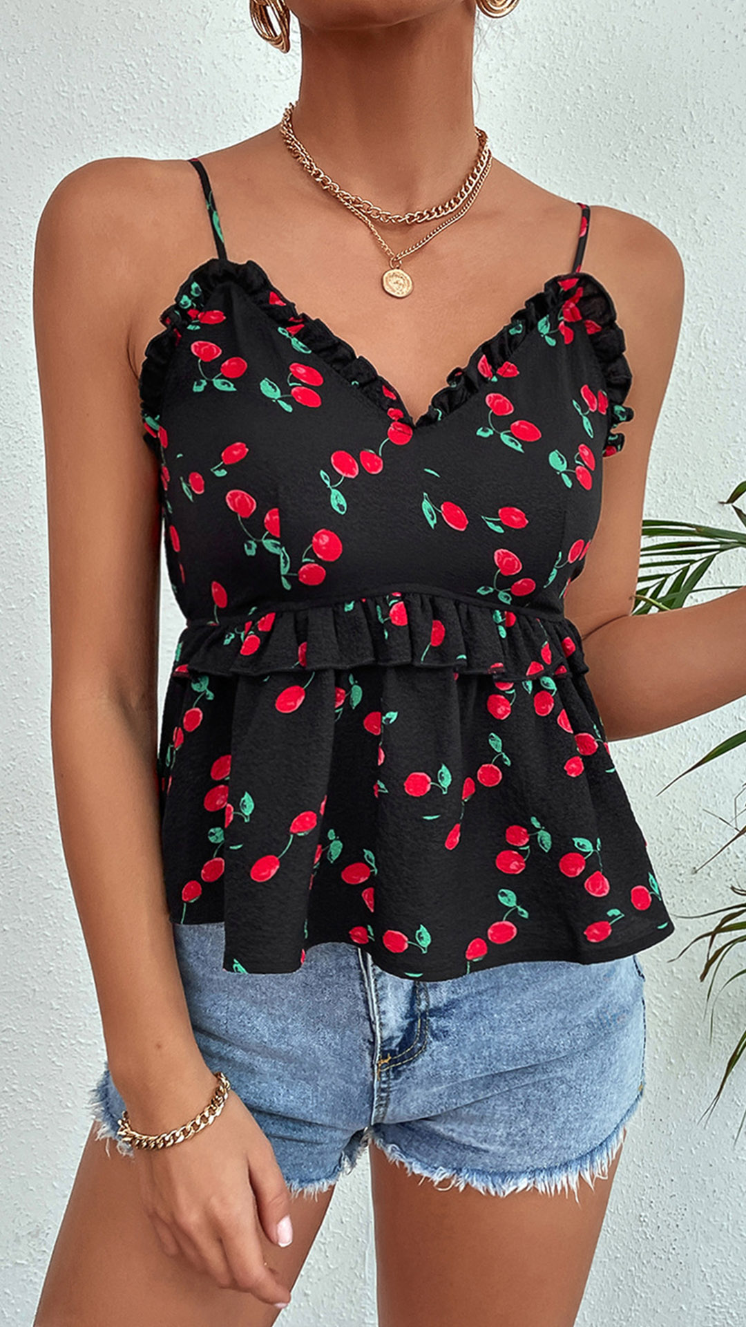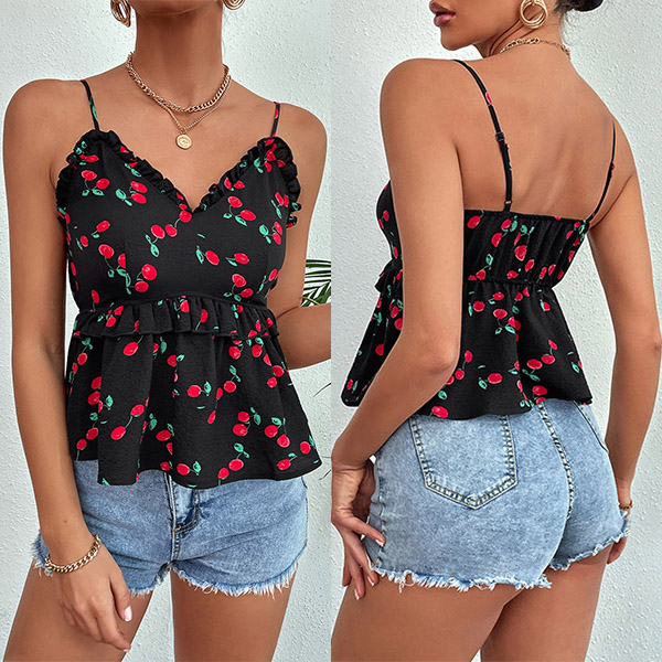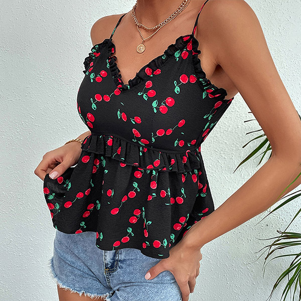 Fashion Ruffle Cherry Printed Cami