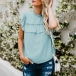 Crafted from soft and breathable chiffon fabric,this wonderful top can give you a cool and comfortable day. It comes with a solid color,the ruffle design at the cuff and front side make this piece look so sweet and stylish. No matter matching with a shorts,skirt or jeans,you can look fashionable enough!