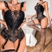 Fashion Ruffle Front Lace-up Two-piece Lingerie Set with Mesh-neck Socks