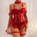 Fashion Ruffle Lace-up Bowknot Lace Lingerie Bodysuit