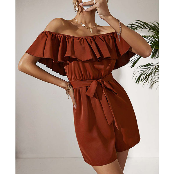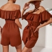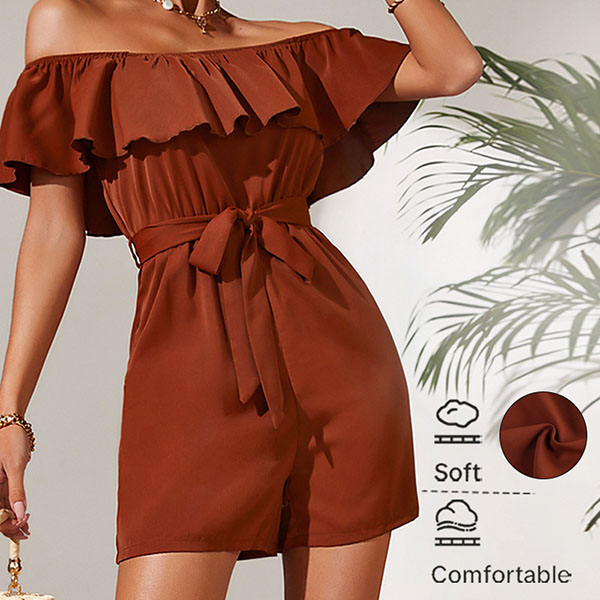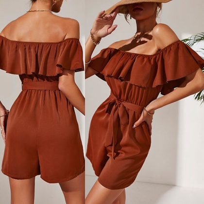 Fashion Ruffle Off-the-shoulder Self-tie Romper