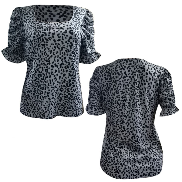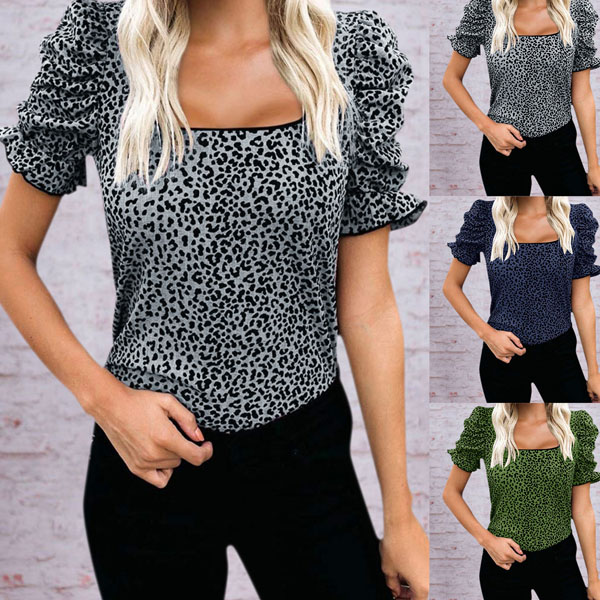 Thanks to the soft and breathable fabric,you can have a cool and comfortable day in this t-shirt. Designed with leopard printed details,which will make this piece look more eye-catching. Moreover,the ruffle cuff and square collar design can lend you a dash of sweet and feminine sense. You ca match it with any pants to like to achieve for a laid-back but fashionable daily look.