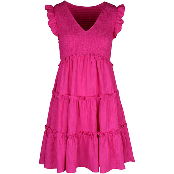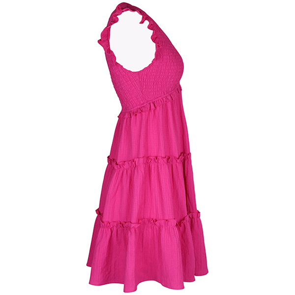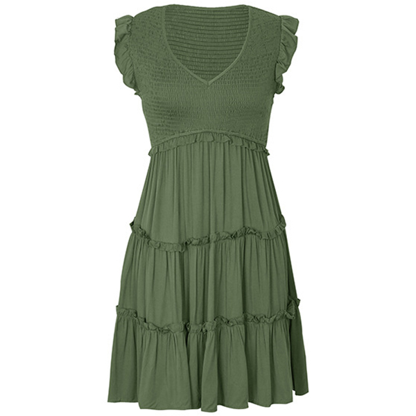 Look at this dress! The ruffle detailing along the sleeveless and tiered details adds a feminine and romantic touch, creating a charming and eye-catching look. Green and red, which one do you like?