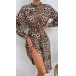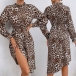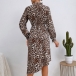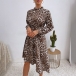 Fashion Ruffle Stand Collar Long Sleeve Irregular Hem Leopard Printed Dress