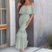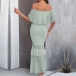 Fashion Ruffle Strapless Fishtail Maxi Dress