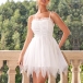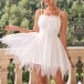 This party dress features a ruffle sweetheart neckline, an irregular hemline, mesh tutu detailing, and a chic and playful look. The ruffle sweetheart neckline adds a touch of romance and femininity to the dress, creating a flattering and elegant silhouette. It is perfect for parties and special occasions.