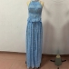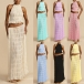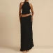 Fashion Ruffle Two-piece Set Consist of Halterneck Short and Maxi Skirt