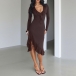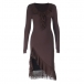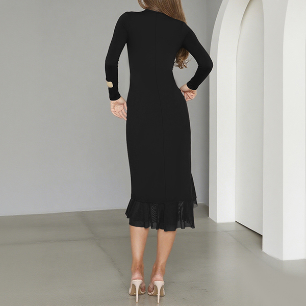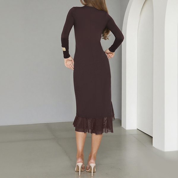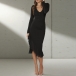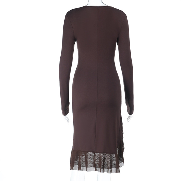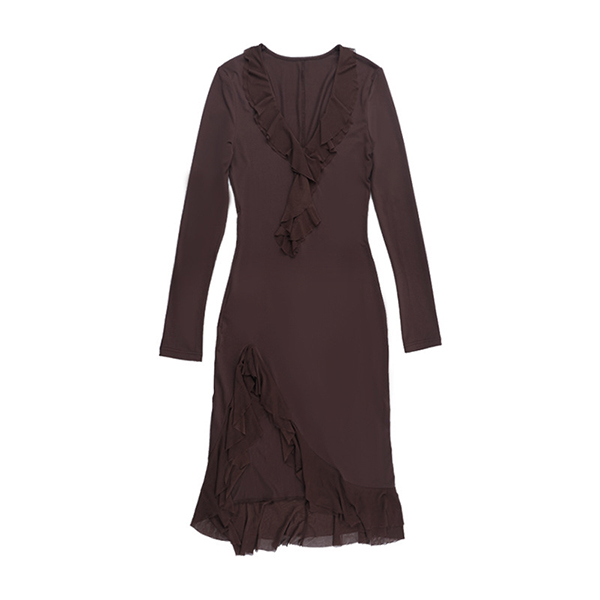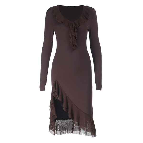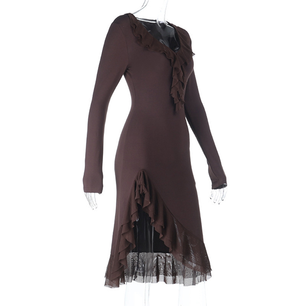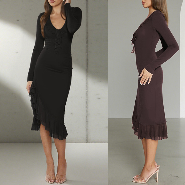 Fashion Ruffle V-neck Long Sleeve Ruffle Irregular Hemline Bodycon Dress