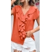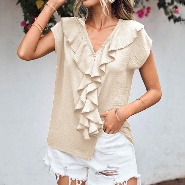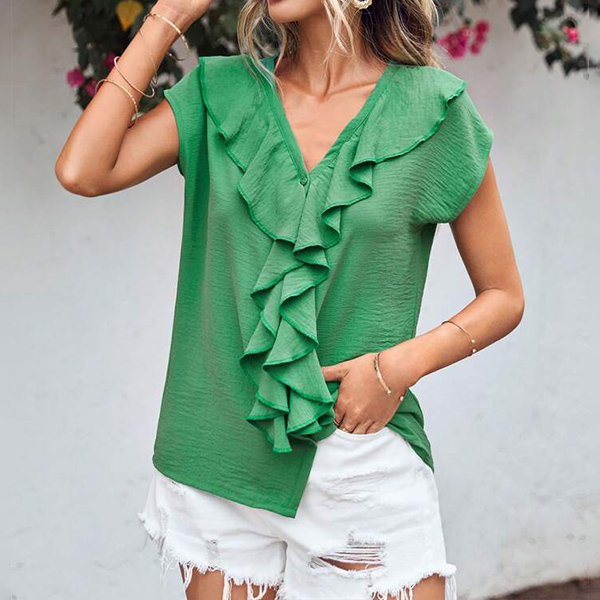 Fashion Ruffle V-neck Short Sleeve Shirt