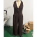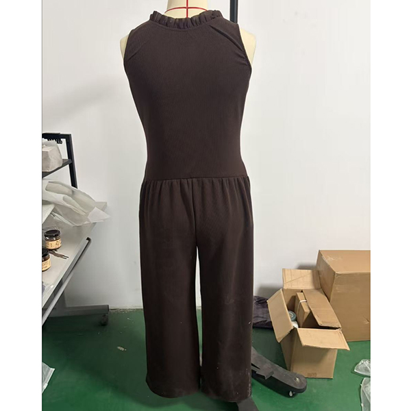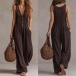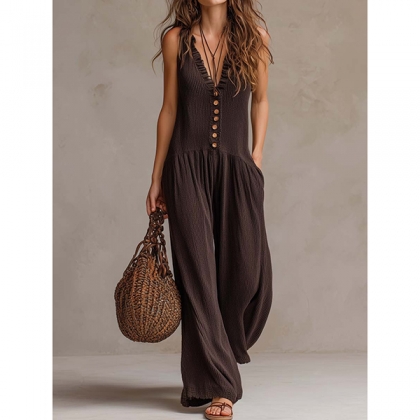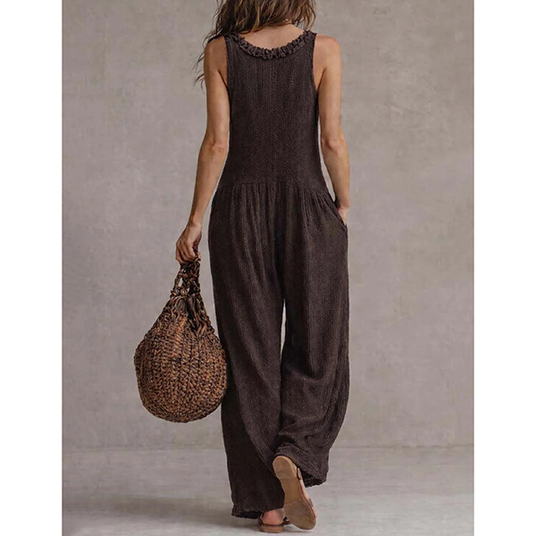 Fashion Ruffle V-neck Sleeveless Wide-leg Texture Jumpsuit