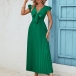 Fashion Ruffled Cap Sleeve Self-tie V-neck Pleated Dress