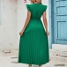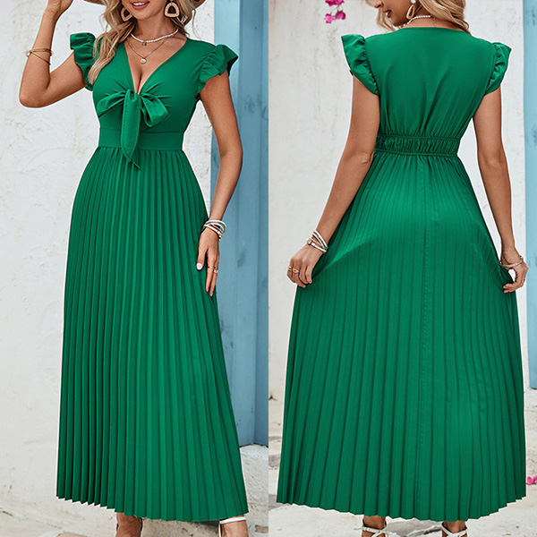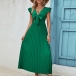 This green dress features ruffled cap sleeves, a self-tie V-neckline, and pleated details for an elegant and fashionable look. Paired it with sandals or flats for a more casual and summery look, suitable for daytime outings or brunch dates.