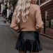 How about this mini-skirt? The ruffled hemline adds a feminine and playful touch, creating movement and visual interest. The PU material gives it a leather-like texture and appearance. Hope you like it.