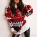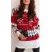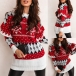Fashion Ruffled Long Sleeve Round Neck Snowflake Pattern Christmas Sweater Dress