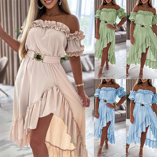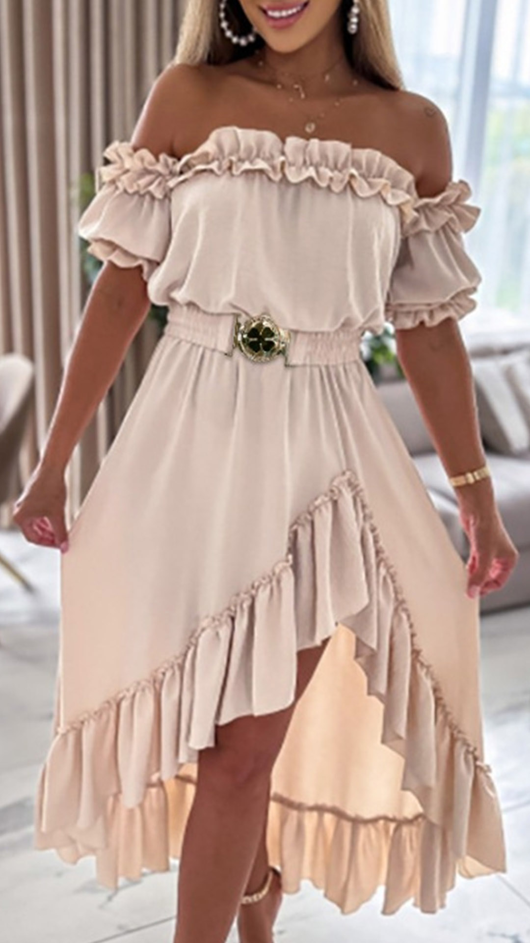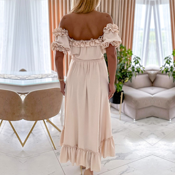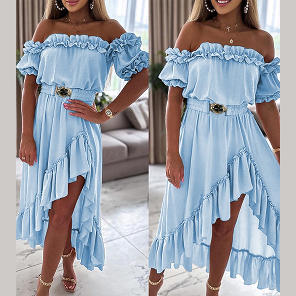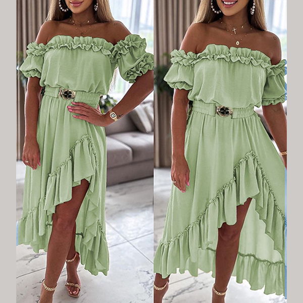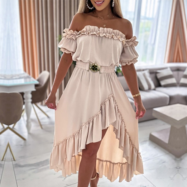 Fashion Ruffled Off-the-shoulder Short Sleeve Irregular Hemline Dress