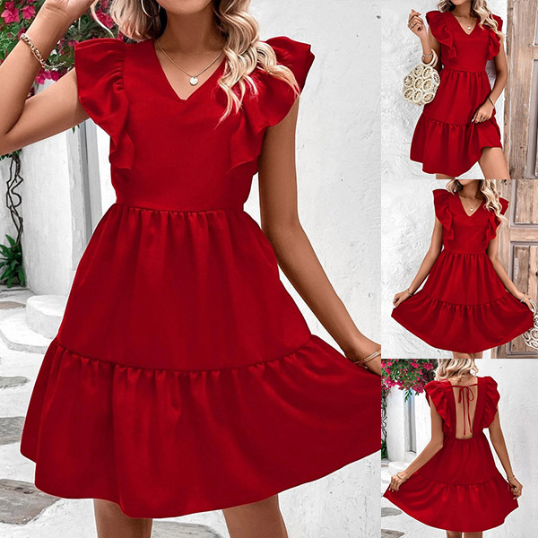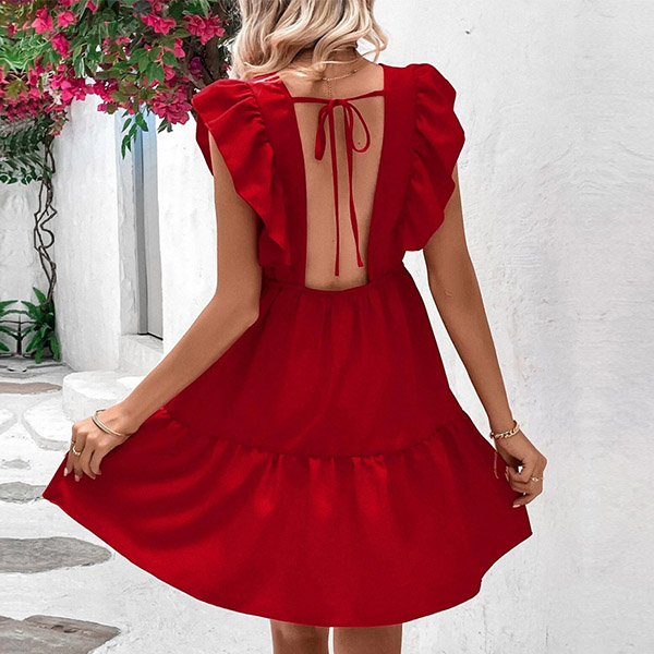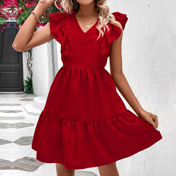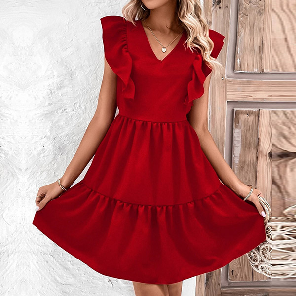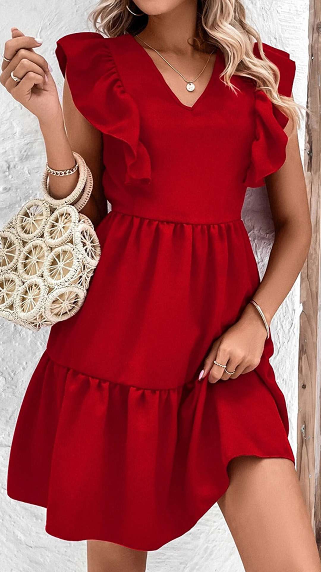 This gorgeous dress features a bold and vibrant red color that's perfect for any occasion, while the ruffled tiered design adds a touch of texture and interest, creating a fun and flirty look that's sure to turn heads.