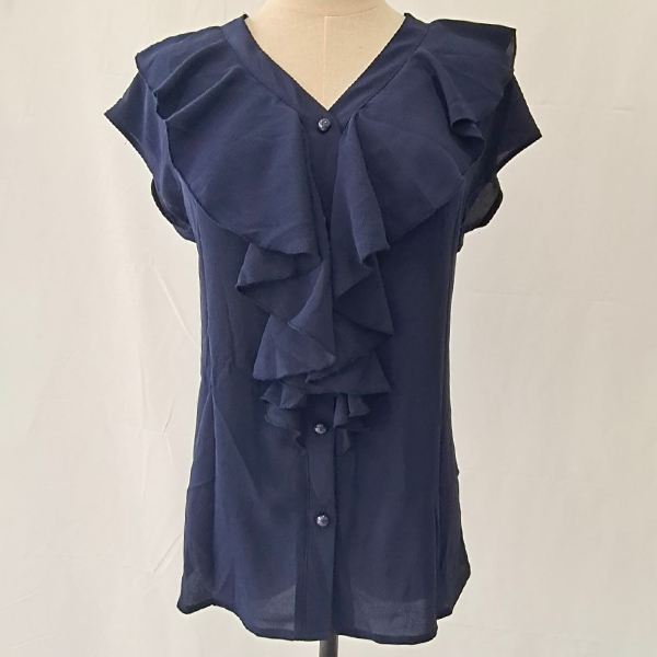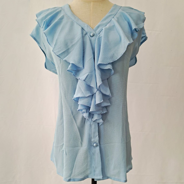 Add a touch of femininity to your wardrobe with this chiffon shirt. The ruffled V-neckline adds a romantic and delicate touch, and the buttoned design adds a classic and timeless element, wanna have one?