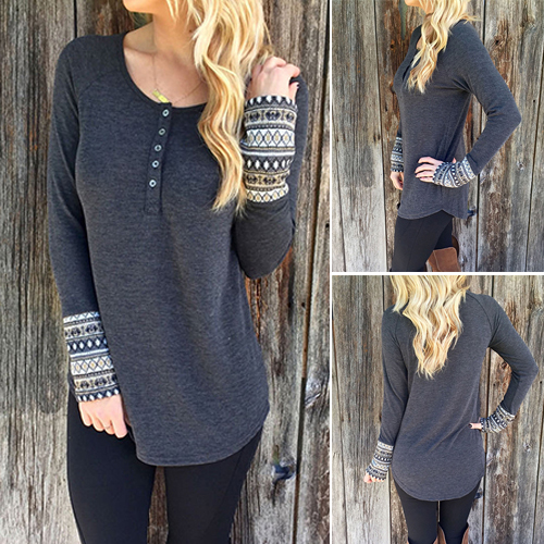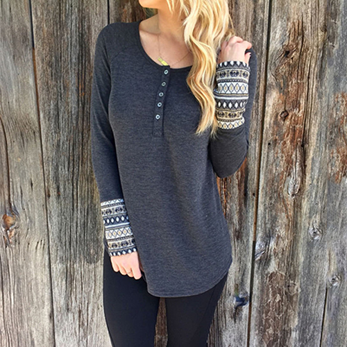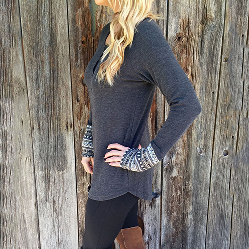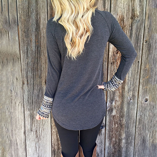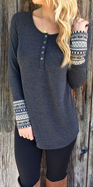 This t-shirt looks very fashion since it is not only designed with a scoop neckline and long sleeves,