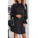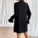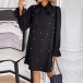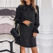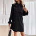 Fashion Self-tie Crew Neck Long Sleeve Beaded Mini Dress