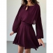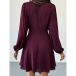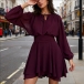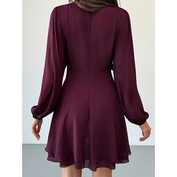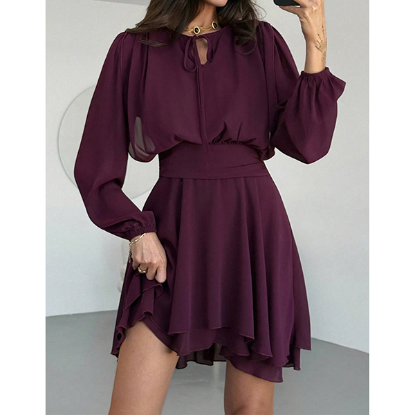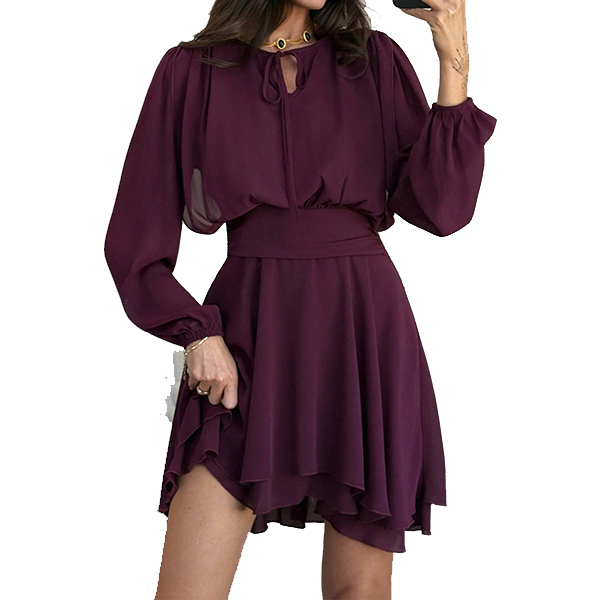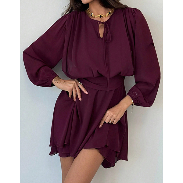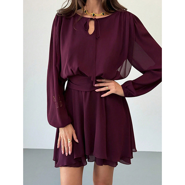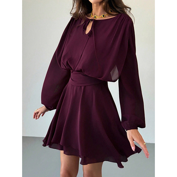 Fashion Self-tie Crew Neck Long Sleeve Chiffon Dress