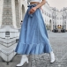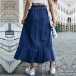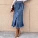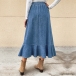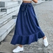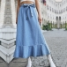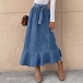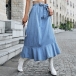 Fashion Self-tie Elastic Waist Ruffle Hemline Denim Skirt